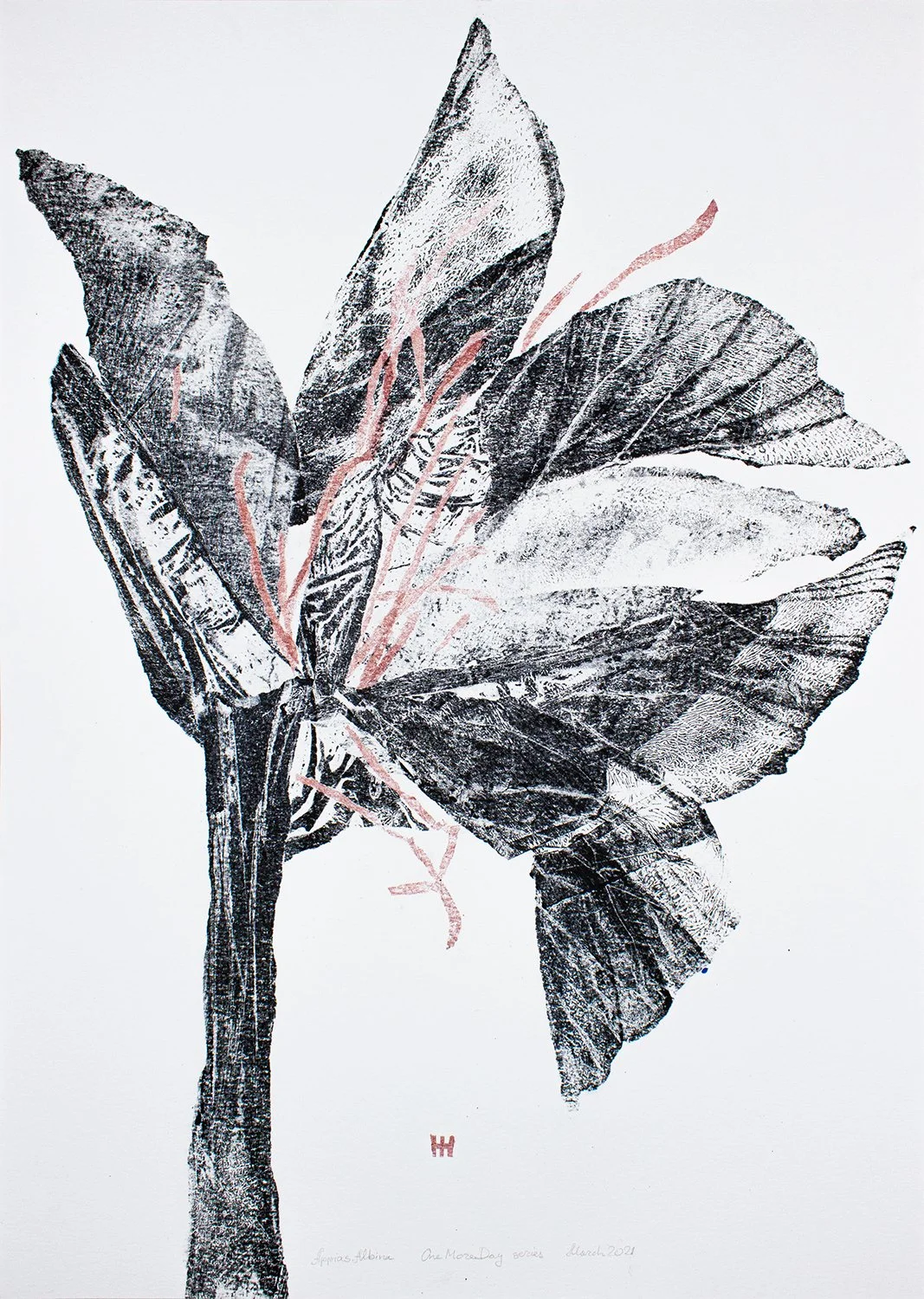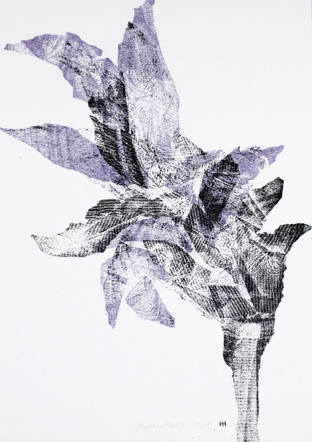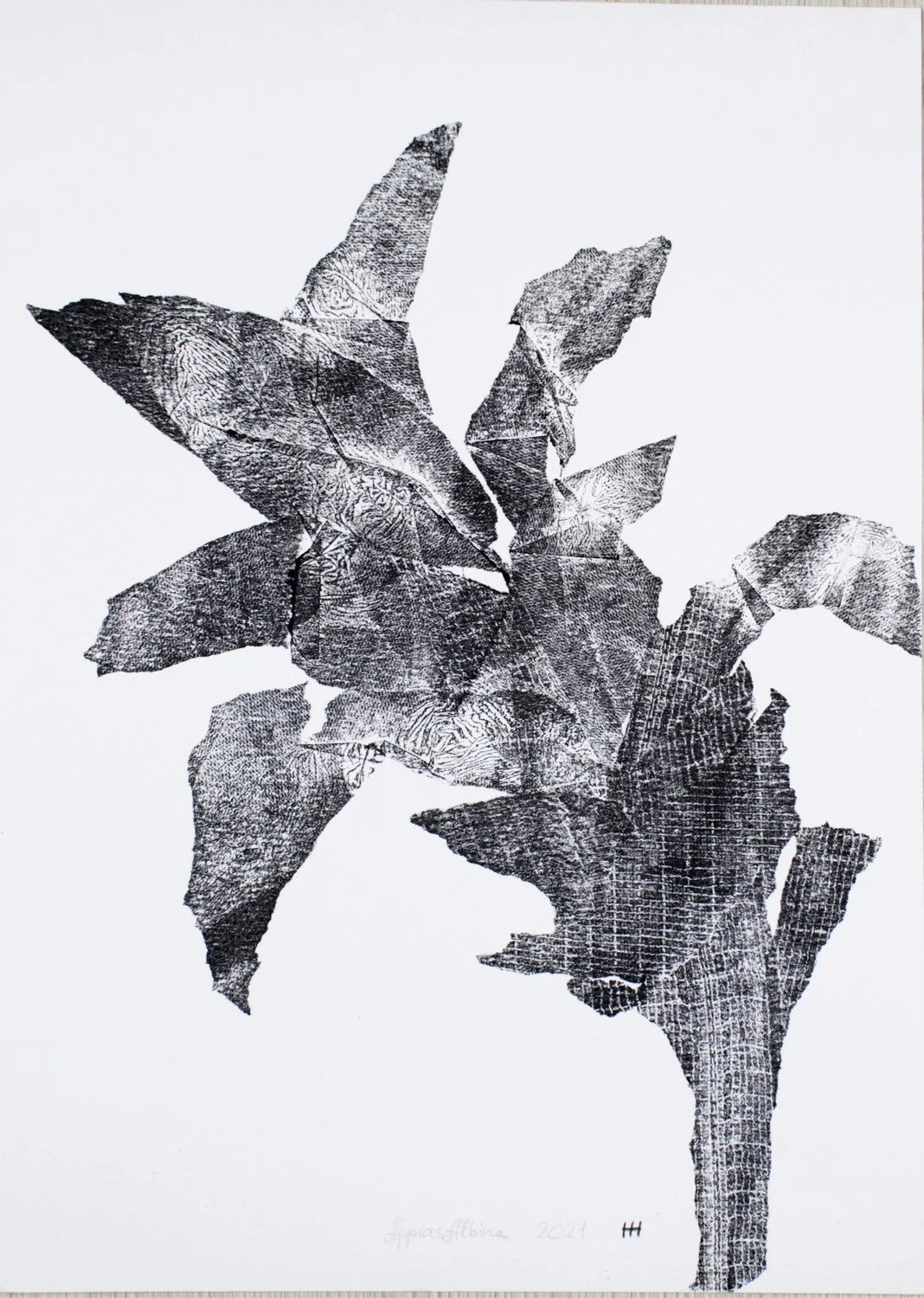 Nine. Botanical series, 2021. Carbon monotype on paper.
