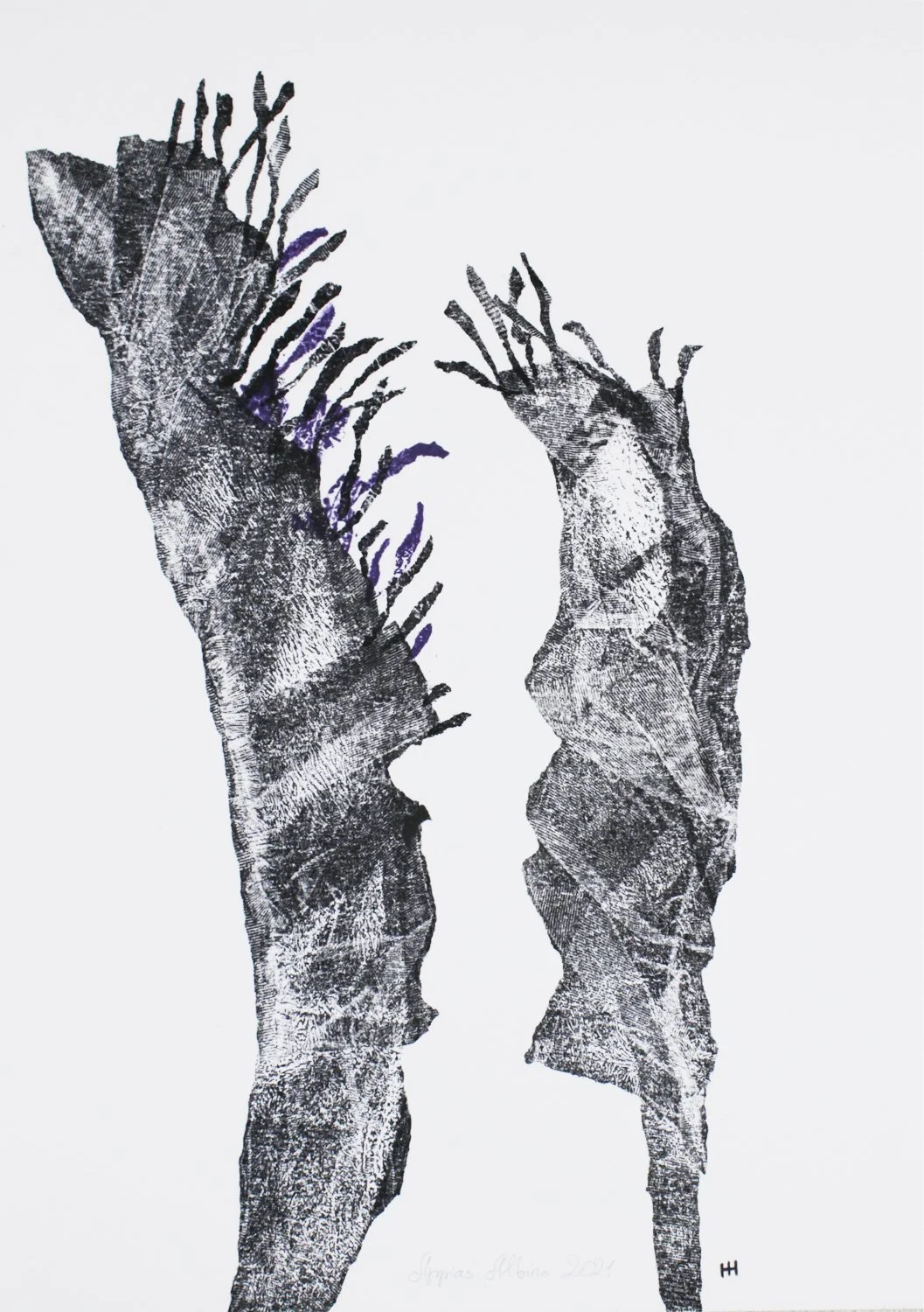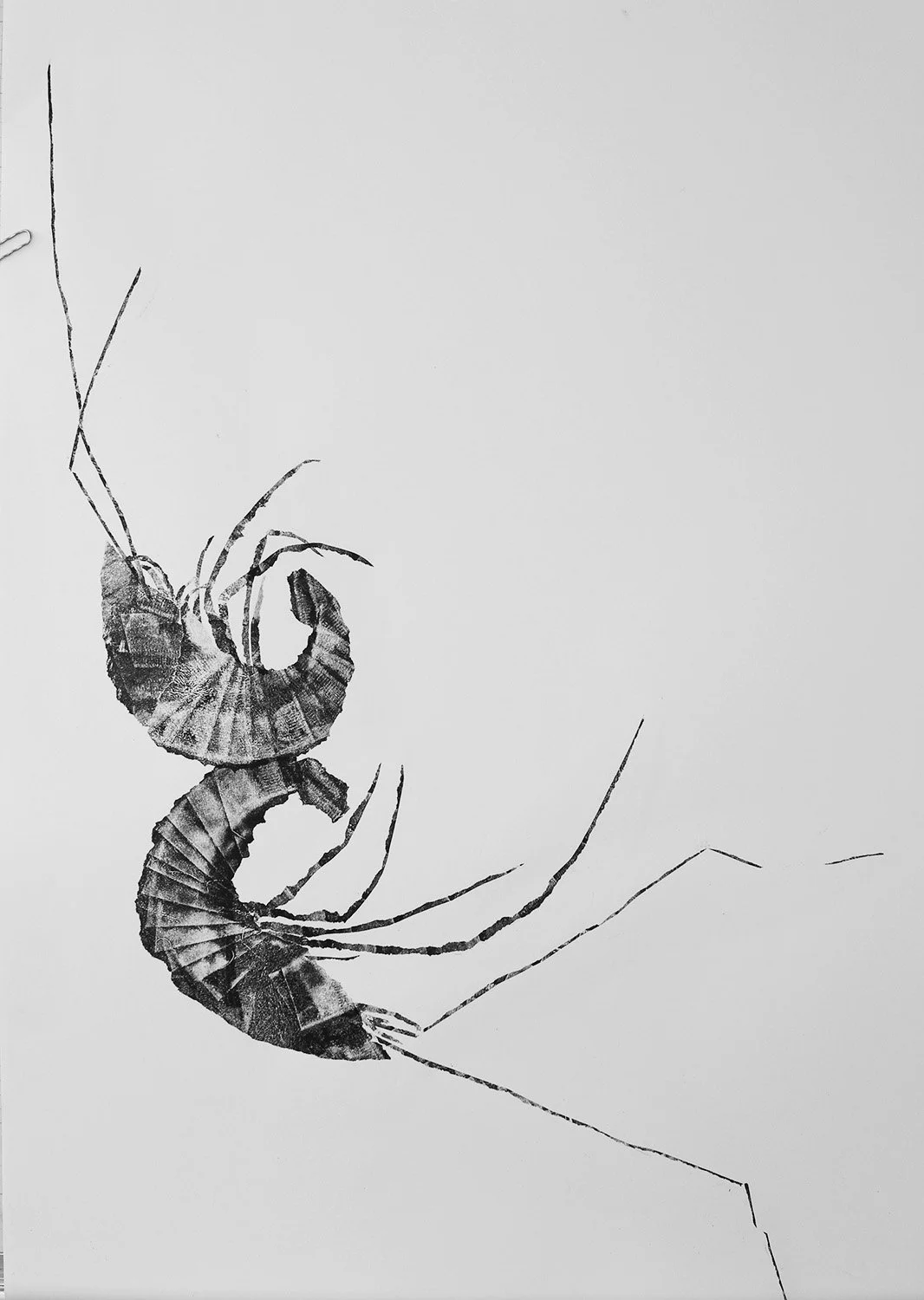 Tartu Shrimps, 2021. Carbon monotype on paper.