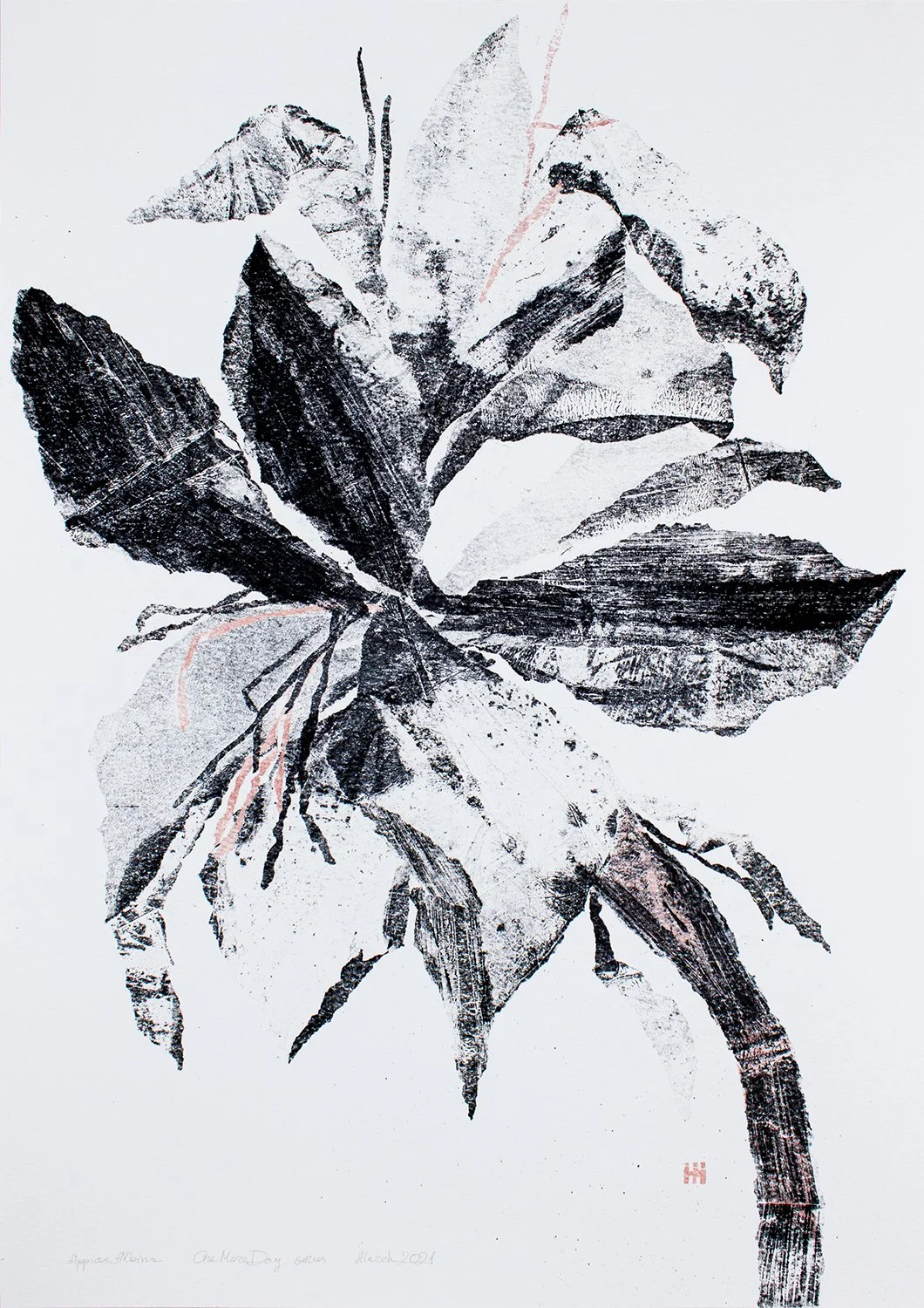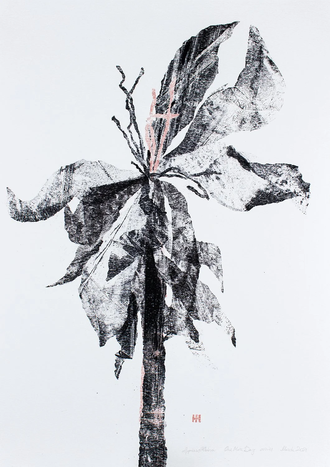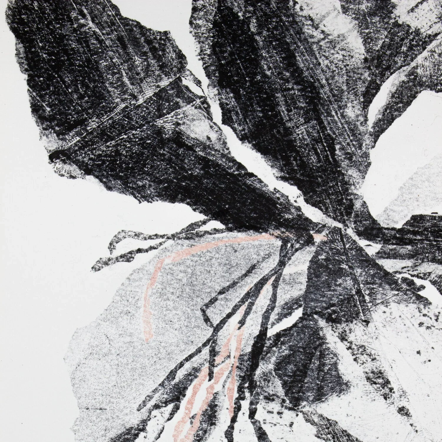 Five.Botanical series, 2021. Carbon monotype on paper.