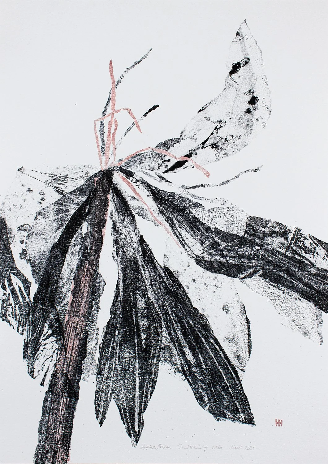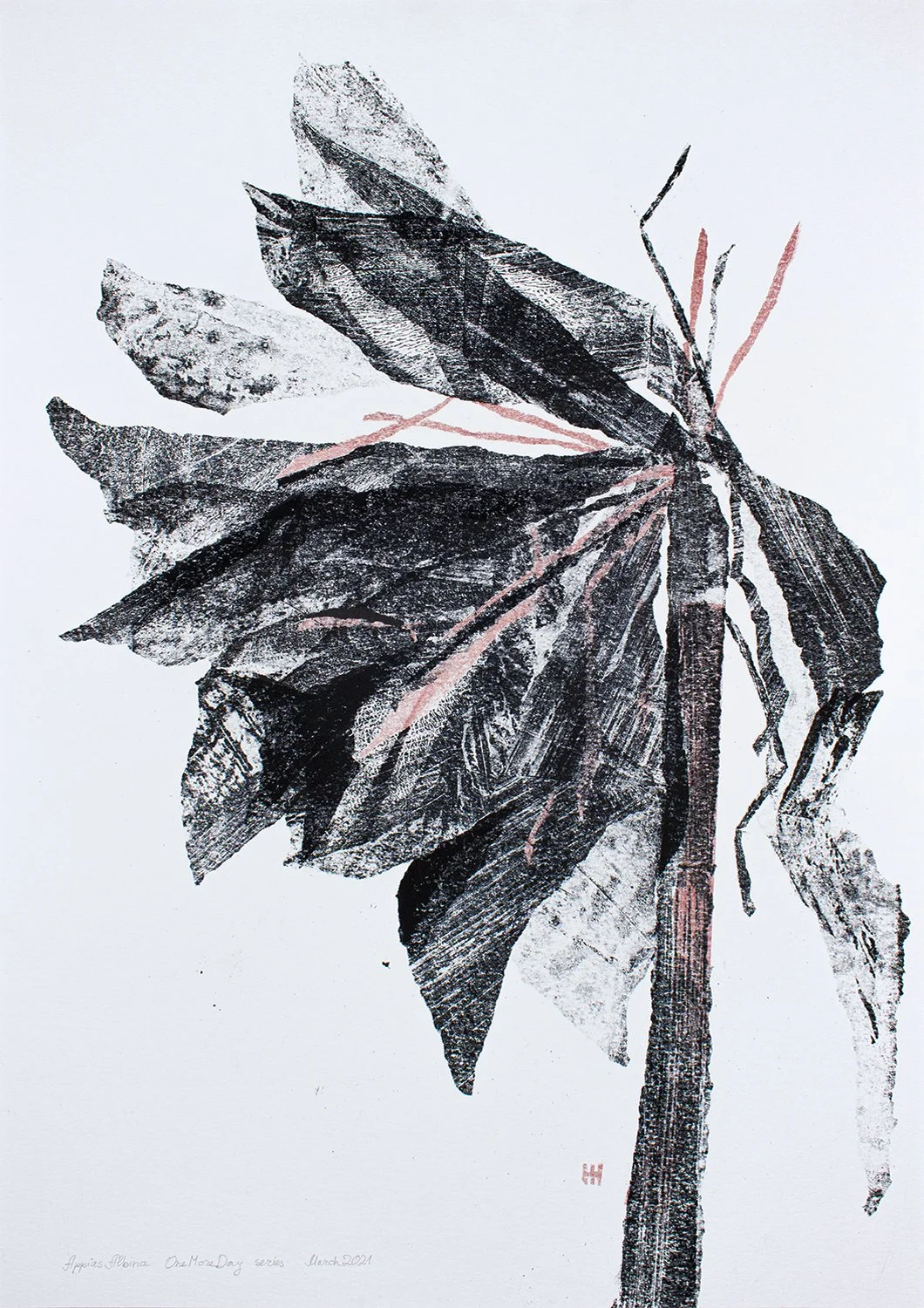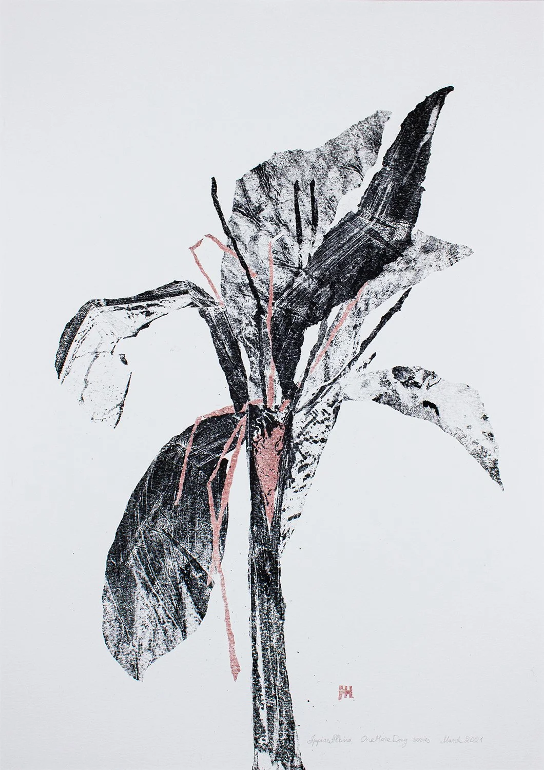 Five.Botanical series, 2021. Carbon monotype on paper.