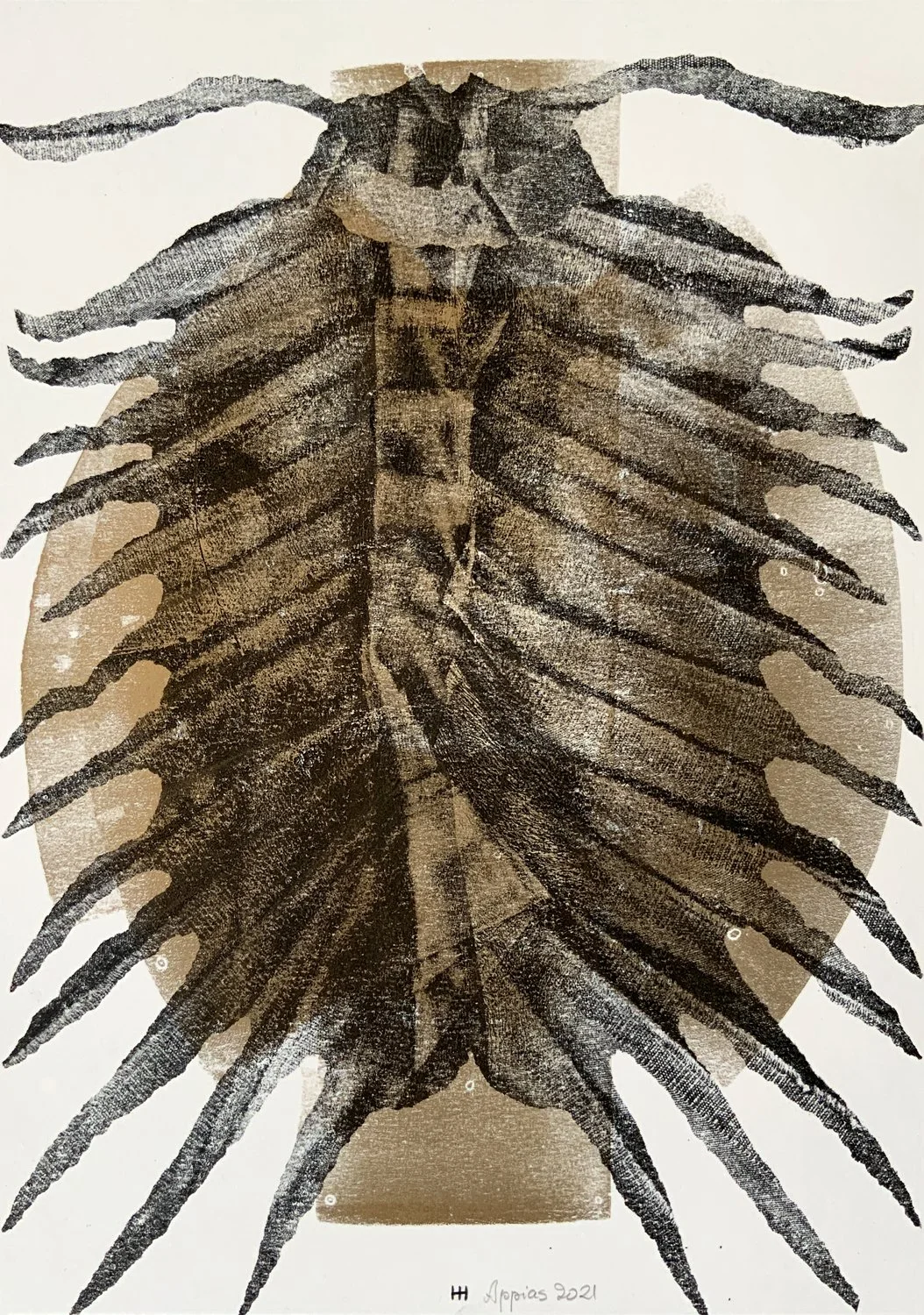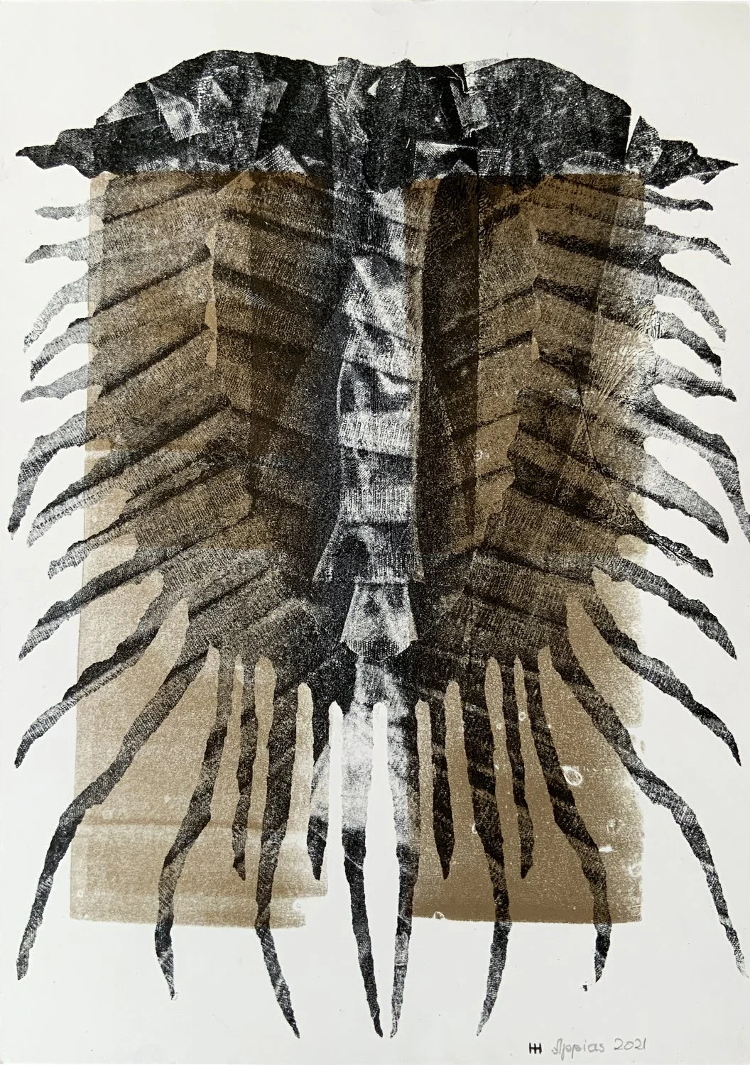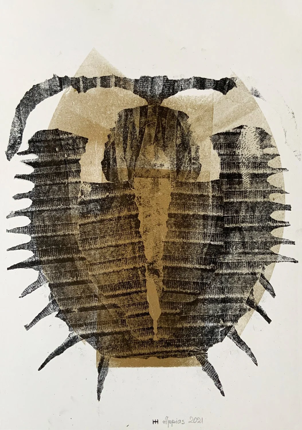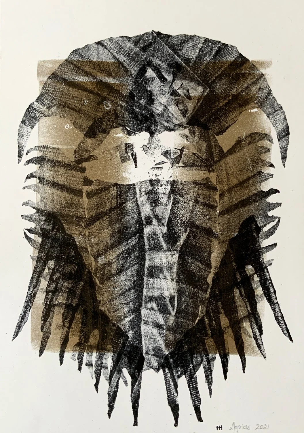 Three. Trilobites series, 2021. Carbon monotype on paper. 29,5x41,5 cm
