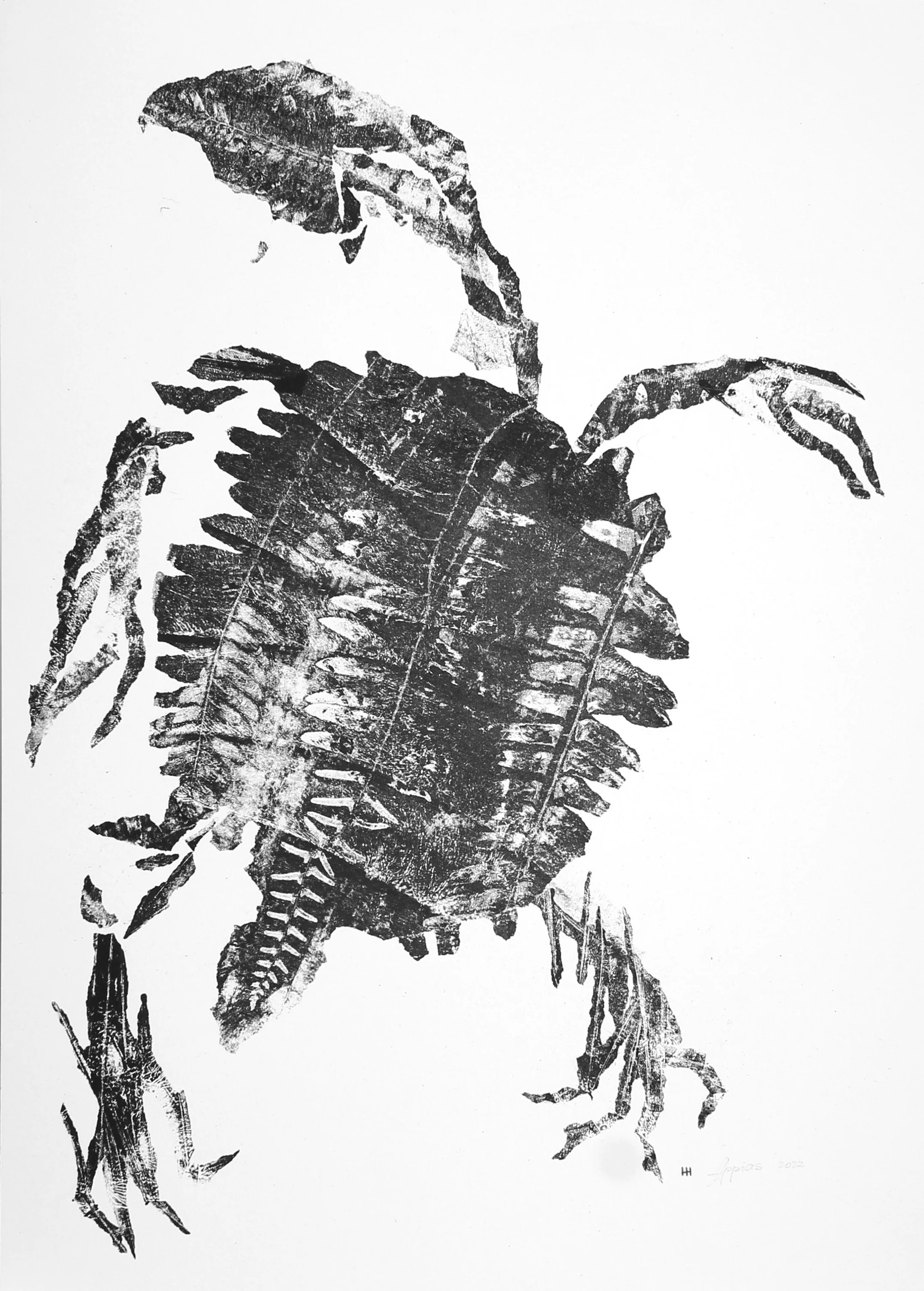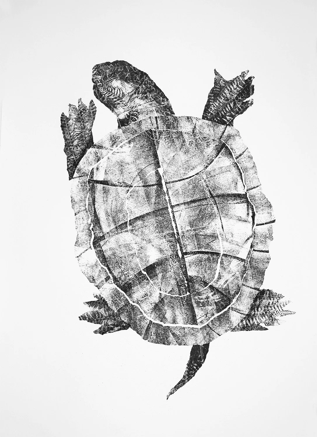 Fossil Turtle, 2022. Carbon monotype on paper. 61x43 cm