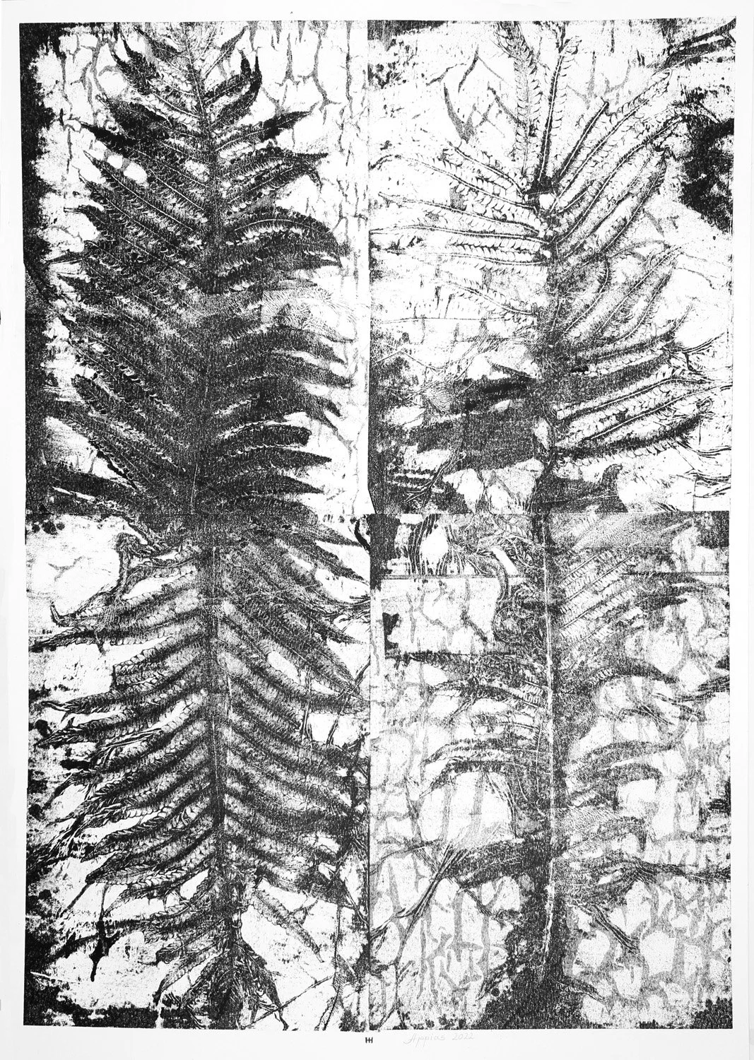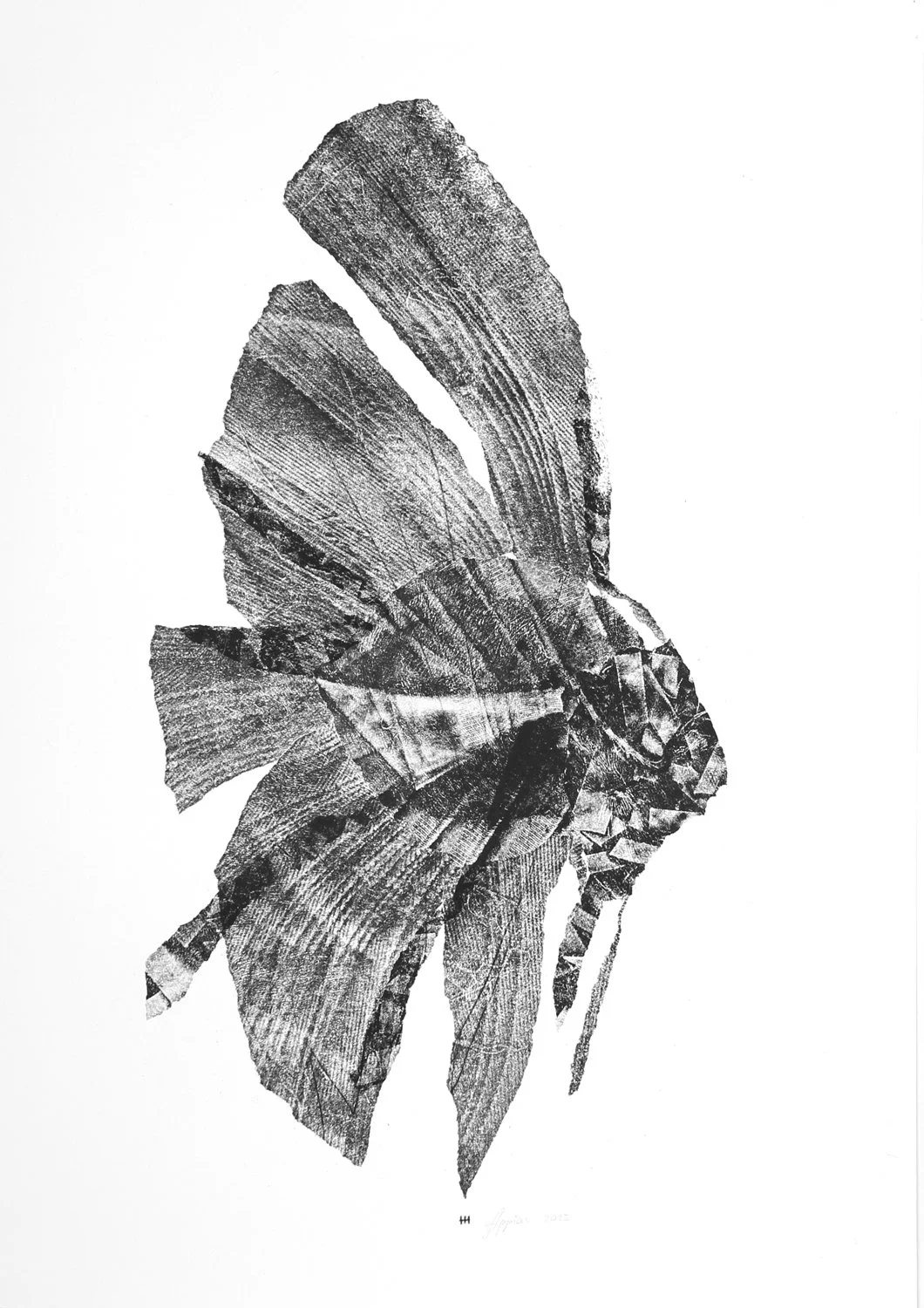Fossil Fish, 2022. Carbon monotype on paper. 61x43 cm