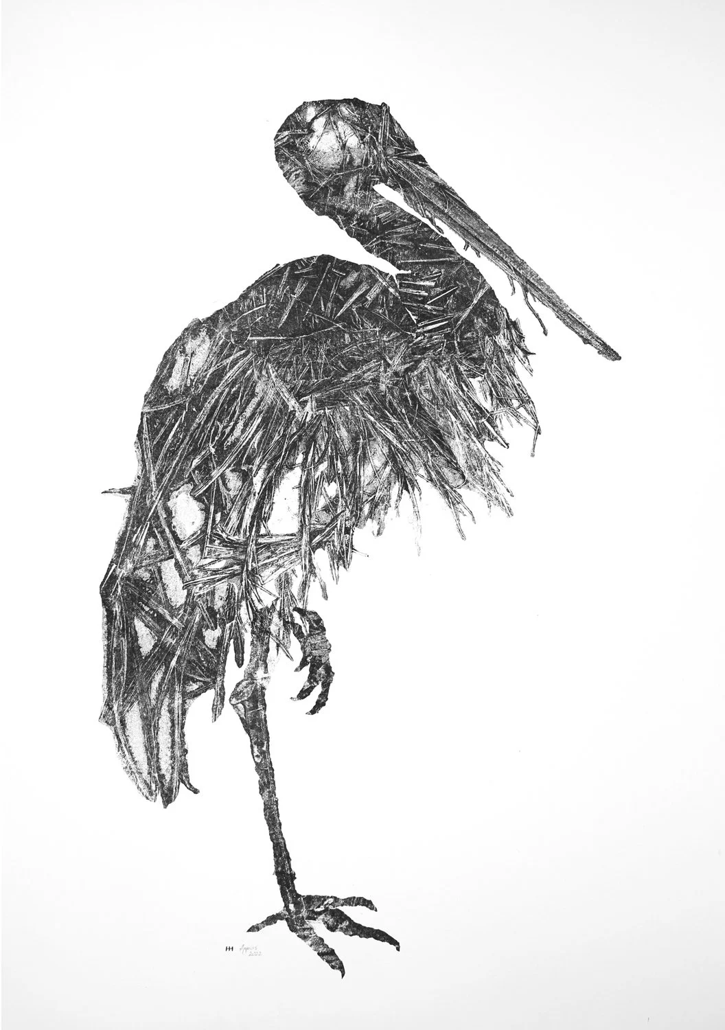 Juodasis Gandras. Ignitis series, 2022. Carbon monotype on paper. 61x86 cm