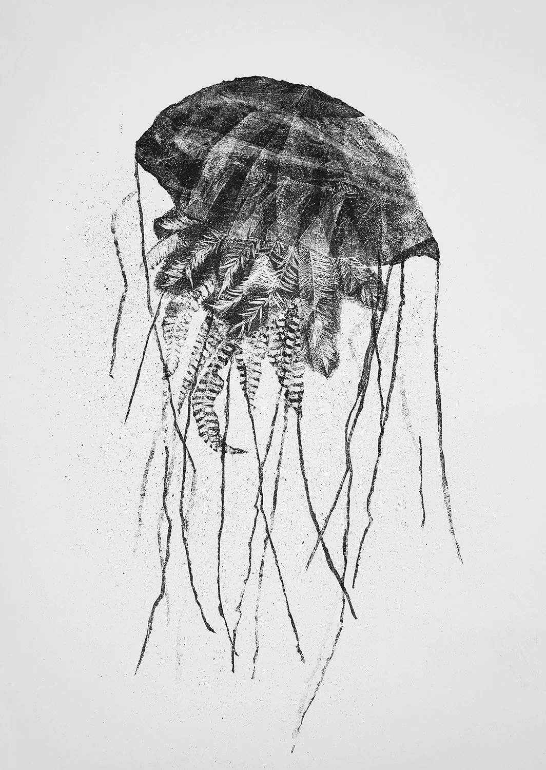 Jellyfish, 2022. Carbon monotype on paper.