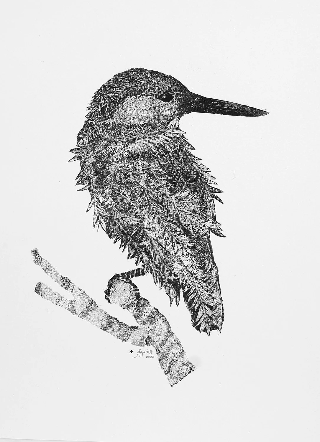 Aštriašnypis Eršketas. Ignitis series, 2022. Carbon monotype on paper.