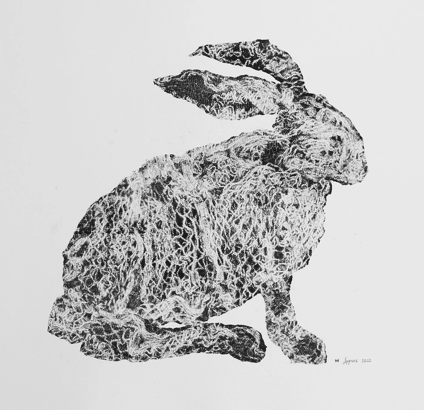 Baltasis Kiškis. Ignitis series, 2022. Carbon monotype on paper. 43x43 cm